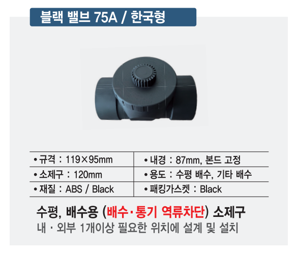 블랙 밸브는 배수통기 시스템의 양압(역류) 문제를 쉽게 해결하는 경제적인 공법입니다.