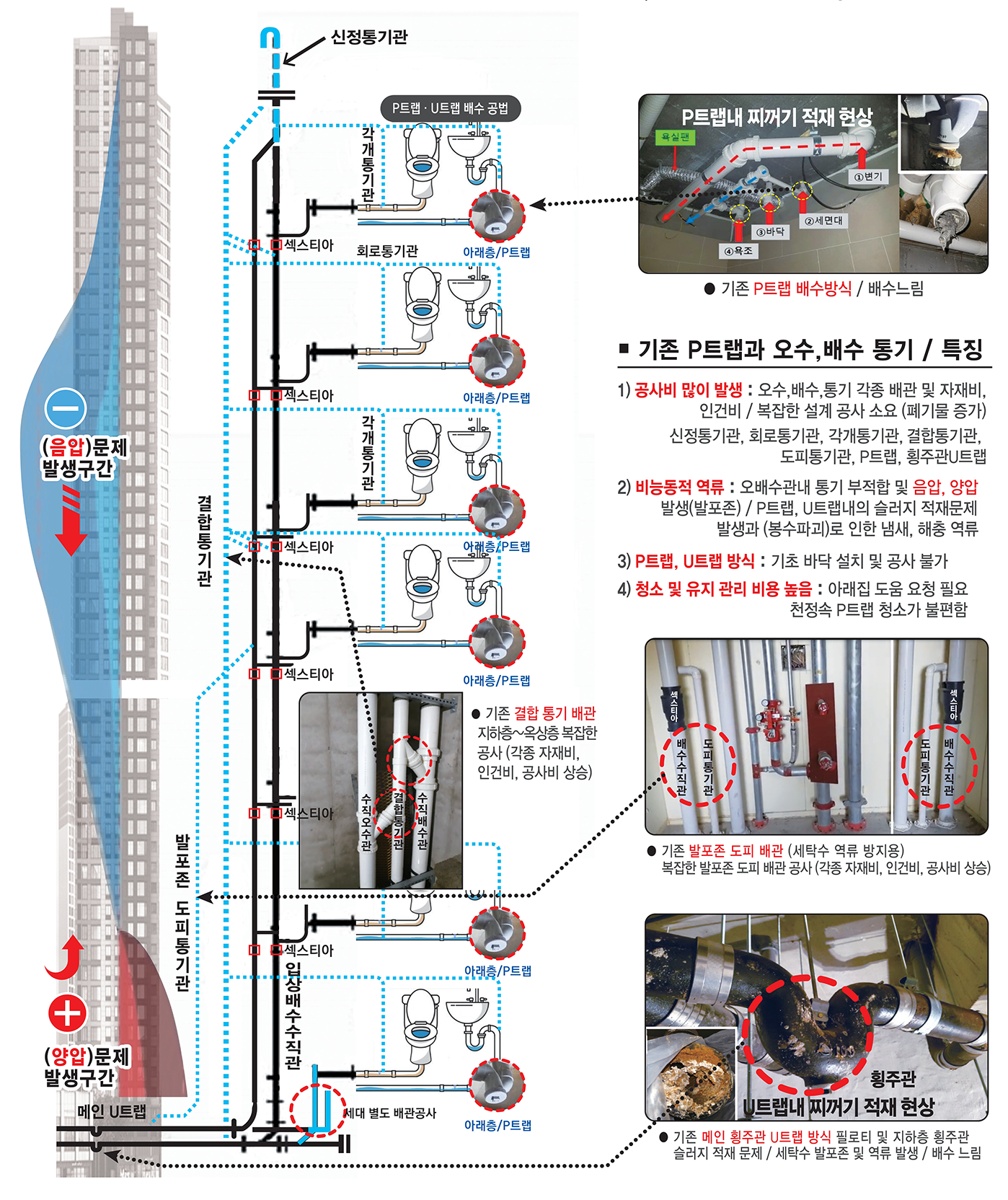 기존 오수, 배수, 통기 시스템 (배관 통기) 공법