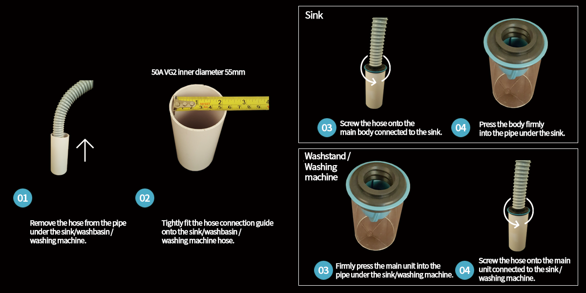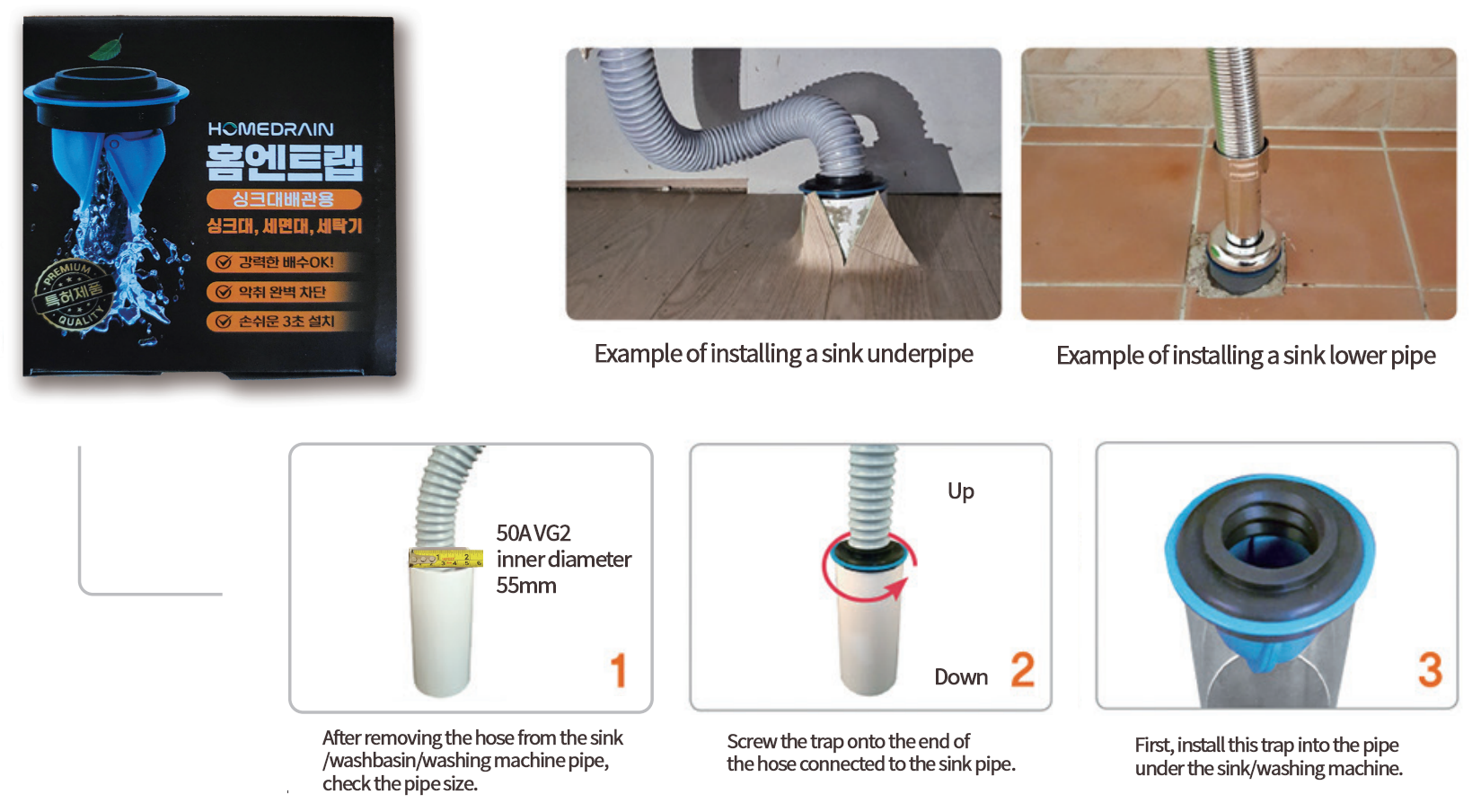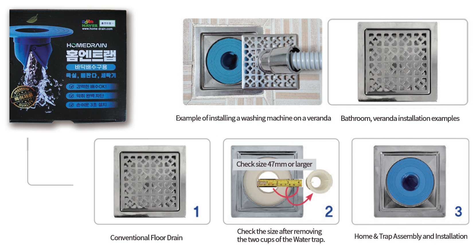 - The home drain trap does not accumulate water inside, and automatically opens and closes when water is used. It has a discharge capacity of more than 60 liters per minute, which is more than the drainage capacity of a washing machine. It is easy to clean and maintain, and there is no breakdown.