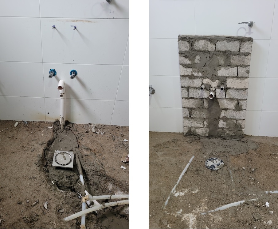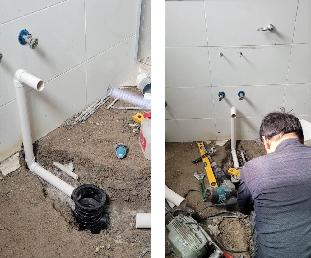 Each pipe joint is assembled with PVC bond. After reviewing the design drawings, the slab floor and sleeve are constructed.